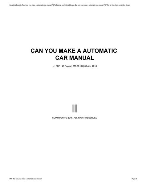 Read can you make a automatic car manual Paperback Internet Archive